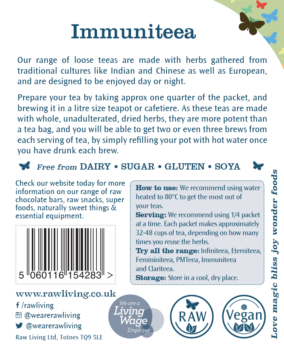 In a cold, damp climate like Northern Europe, constantly eating and drinking raw foods can leave you feeling sluggish and unbalanced. One of the simplest ways to stay warm, grounded, and energised is to sip on warming herbal teas throughout the day — and Immuniteea is the perfect blend to do just that.