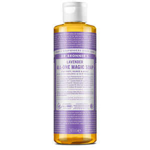 Dr Bronner's Magic Soap, Lavender is a relaxing fragrance, perfect just before bedtime or to start your day out with a tranquil peace of mind. All oils and essential oils are certified organic to the National Organic Standards Program. Packaged in 100% post-consumer recycled plastic bottles.