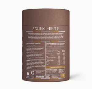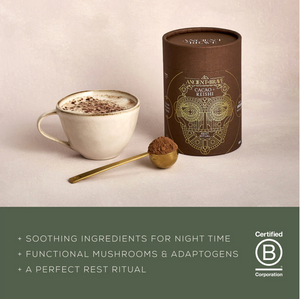 This delicious raw cacao brew with balancing ashwagandha, warming hops and reishi mushroom is crafted to transport you into a state of tranquillity in your Rest Ritual.