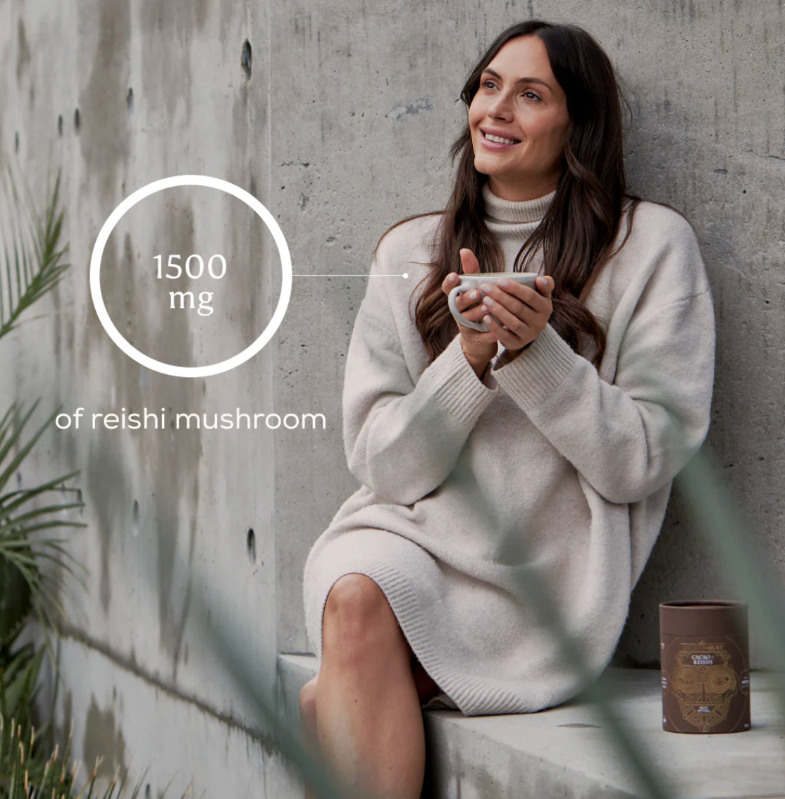 Crafted with a carefully curated blend of ingredients, this vegan hot chocolate combines the rich, antioxidant-packed goodness of raw cacao with the balancing benefits of adaptogenic Reishi mushroom, helping to support your body’s natural rhythm as you wind down.