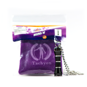 Try one for yourself. Give them as gifts to your loved ones. Each pendant has a steel rod, which has been drilled out to hold the 12mm Vertical crystal. The word Vertical is printed on the highly polished steel tube. Each comes with a decorative spinning sleeve you can play with. The Mini-V comes with a velvet Tachyon logo bag.