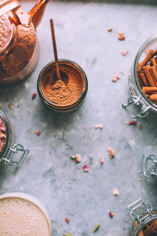 Infused with botanicals such as Horsetail, He Shou Wu, Nettle, and Rose, this comforting formula is a grounding daily ritual — a way to pause, sip, and reconnect. With its naturally spiced and floral profile, it's equally delicious in warm milk, smoothies, or mixed into your favourite wellness creations.