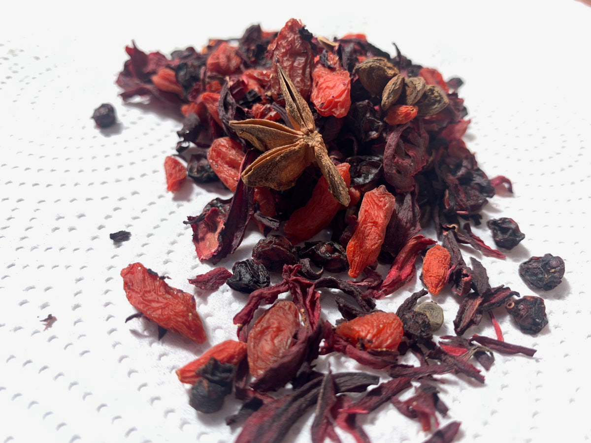 Goji berries, Hibiscus flowers, Schizandra berries, Star Anise