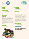 I’ve tried to keep it as simple as possible for you. Simplicity is what works! First of all we have the menu plan for you to easily refer to. Following that is the menu plan broken down into detail – this is where to look when you’re stuck about something. Next we have the recipes, over 60 recipes that will have you and anyone you’re sharing them with oohing and aahing with delight. I’ve kept all the recipes as simple as possible, so you’re not going to be in the kitchen for hours every day. Then finally, at the back, we have the ingredients lists. Making sure you have everything you need in is key, and getting the best quality, freshest ingredients will make all the difference to how your meals taste.